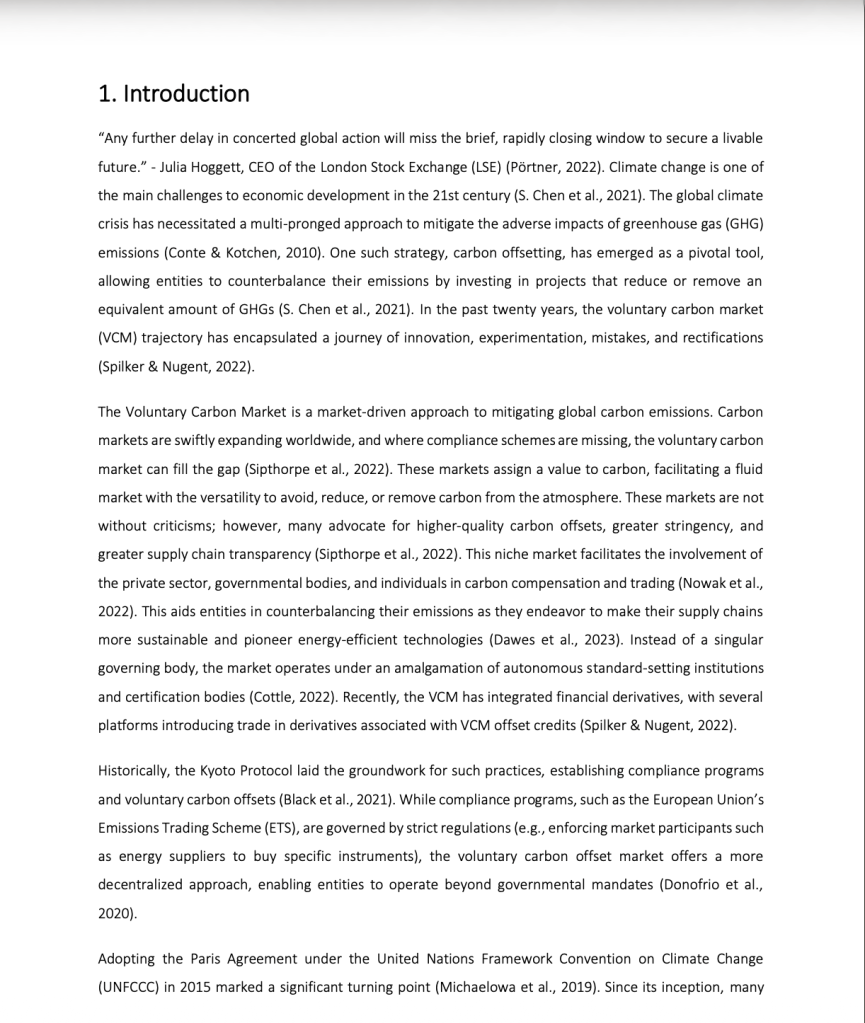The research paper, “Unraveling the Veil: Intransparency and Inefficiency of Voluntary Carbon Offset Trading and Exchanges”, examines the structure, pricing mechanisms, and key players of the voluntary carbon market, with a particular focus on transparency challenges and market fragmentation.
